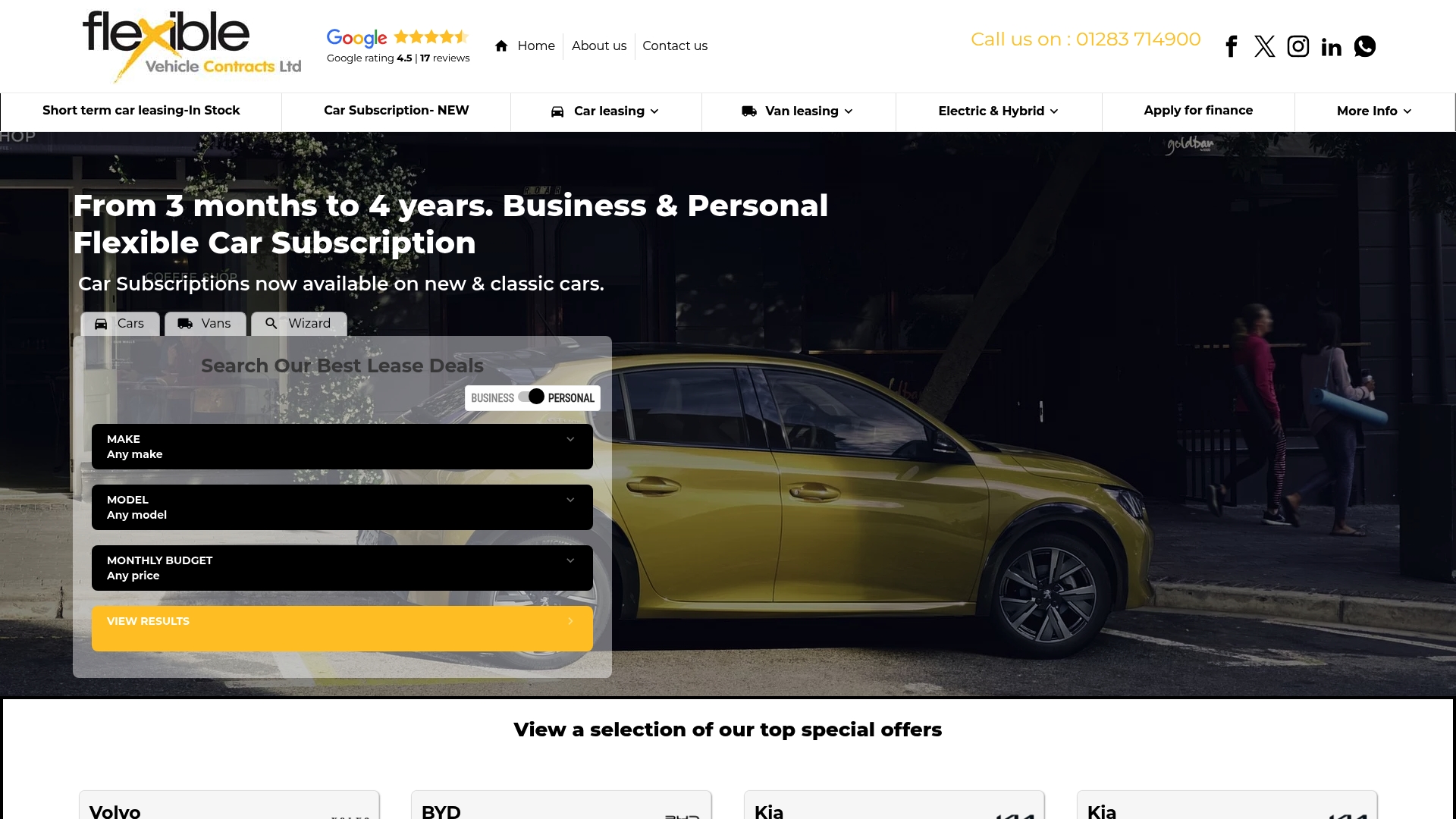 Flexible Vehicles provides a wide catalogue of makes and models alongside electric and hybrid vehicles and both car and van choices. Their offering spans short term leasing and longer agreements with stock available for faster delivery.