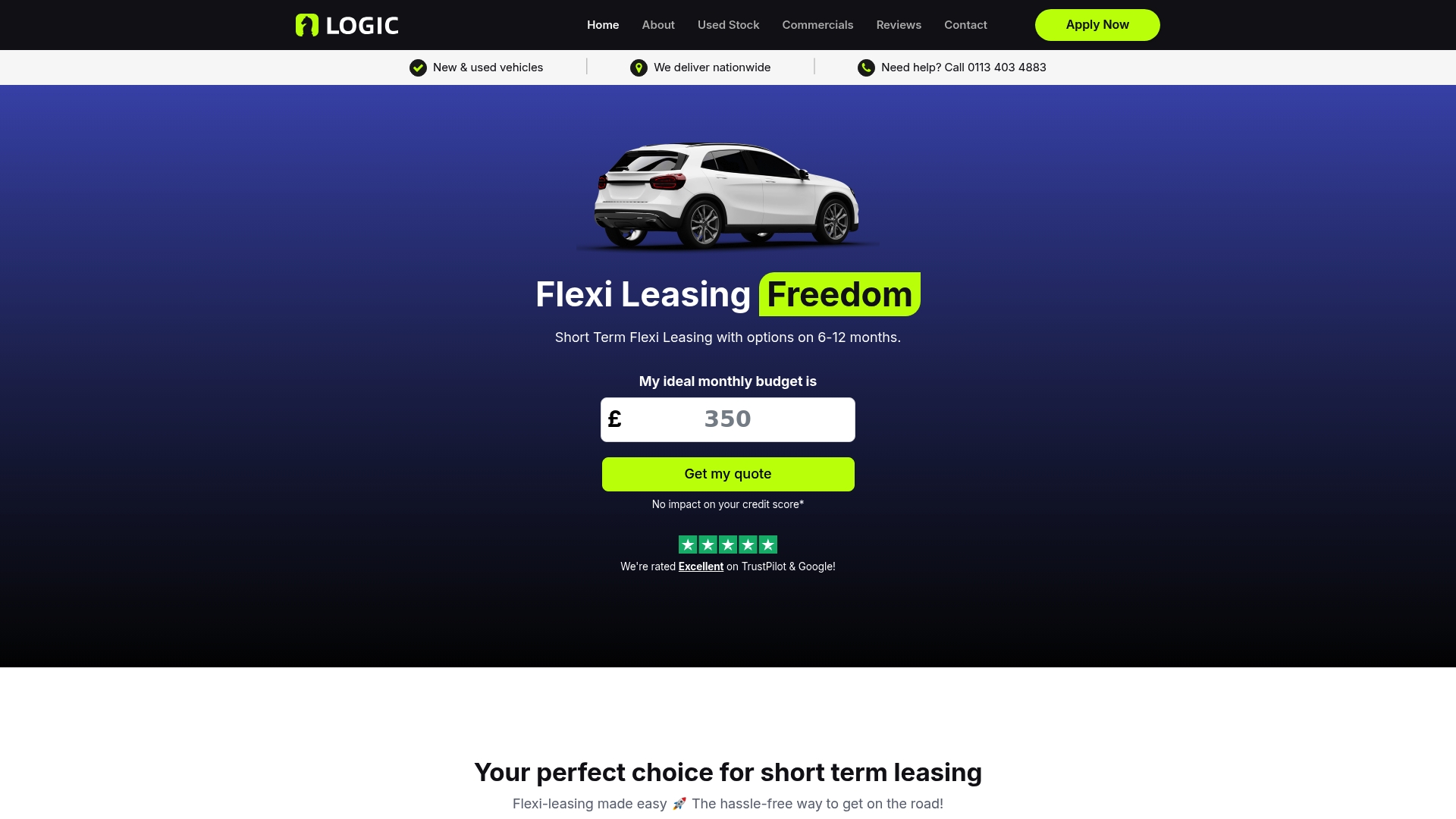 LOGIC Leasing offers flexible short term leasing options, a wide selection of new and used vehicles, and nationwide delivery across the UK. The platform also highlights transparent pricing and a streamlined application process that focuses on quick responses and personalised service.