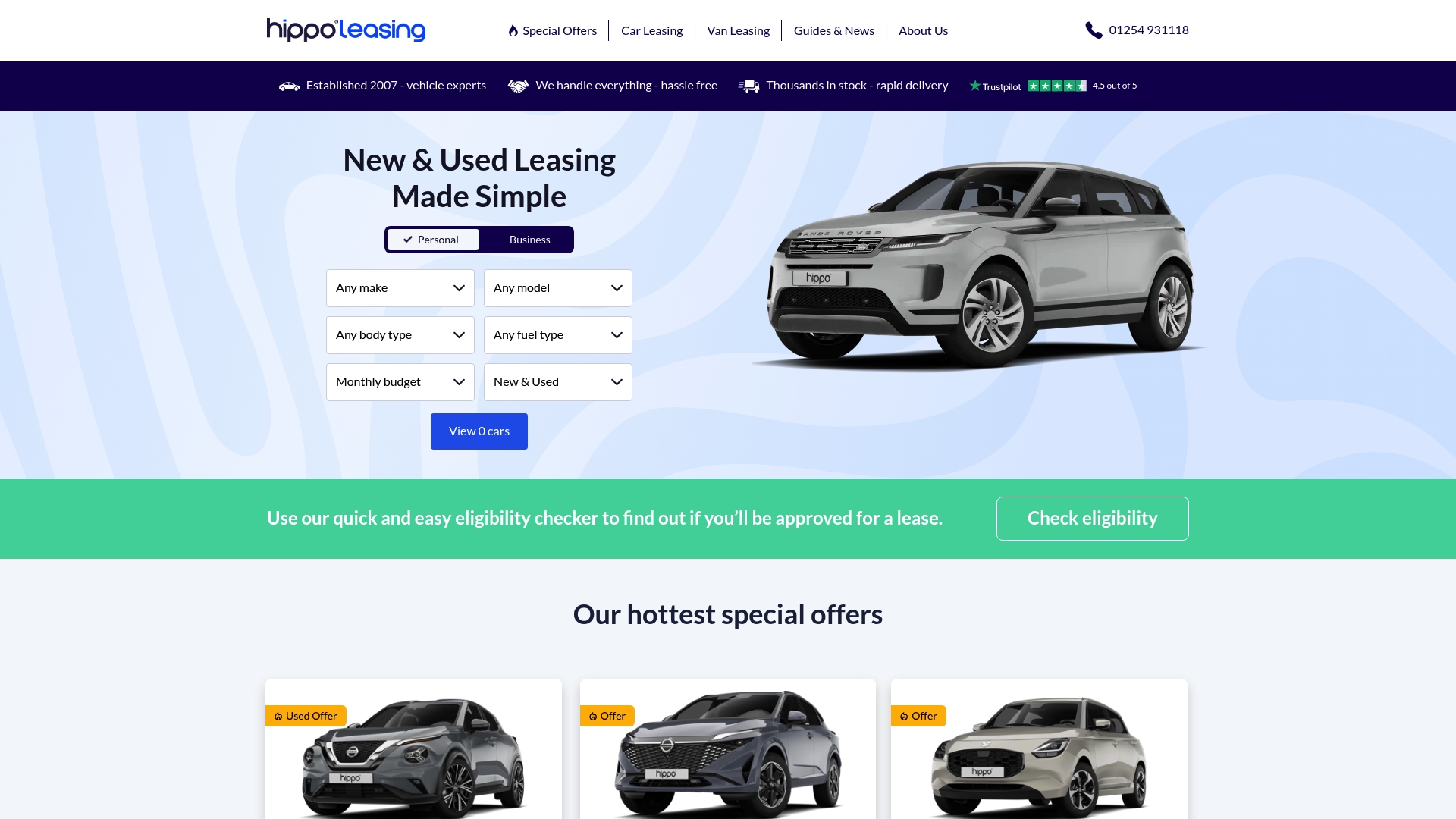 Hippo Leasing provides a wide range of vehicles including cars and vans and both new and used stock. The platform lists electric and hybrid options alongside petrol and diesel choices to match low emission needs.