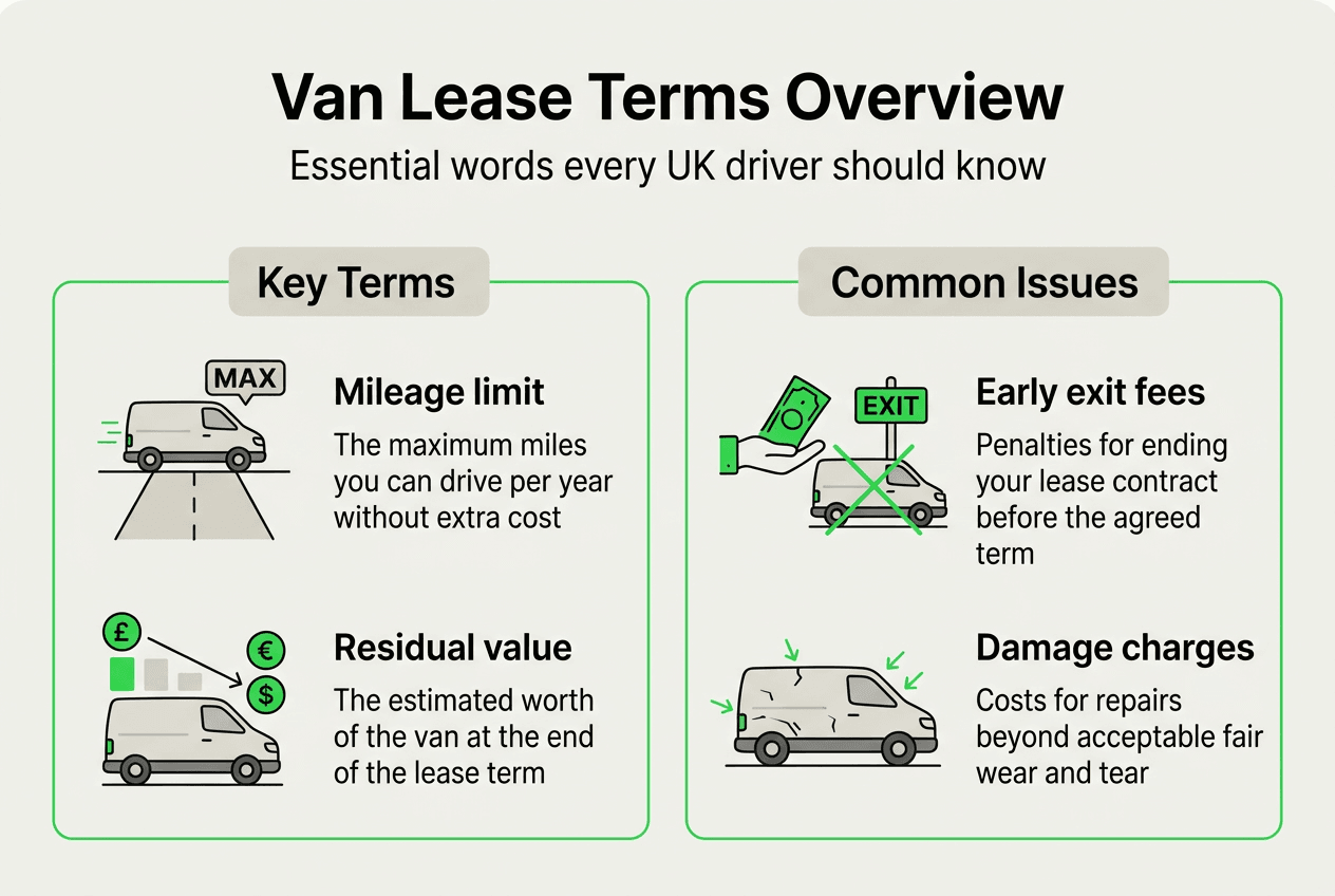 Many people with bad or limited credit assume van leasing is beyond their reach because the terminology feels deliberately complicated. The truth is simpler: understanding just a handful of key terms unlocks flexible leasing options across the UK in 2026. This guide cuts through the jargon to explain essential van leasing terminology, helping you make confident decisions whether you need a vehicle for personal use or your small business. By the end, you'll know exactly what to look for and which questions to ask.